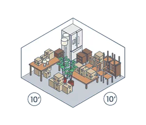 Medium 10x10 units are similar to one side of a garage. Good for household furniture, travel gear, and office furniture.