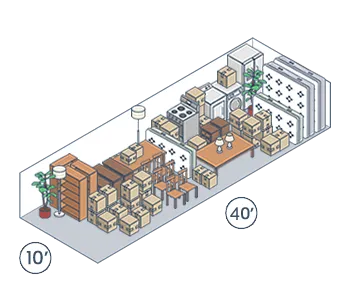 For those in need of significant storage space, our 10x40 units provide 400 square feet, similar to a large garage. These units are spacious enough to accommodate the belongings of a four- or five-bedroom house.