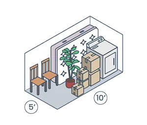 Our 5x10 storage units are the perfect size for smaller furniture equivalent to what goes in a bedroom or a small office—small yet mighty. Comparable to a fourth a standard garage, these units can easily accommodate the belongings of a one-bedroom in a home.
